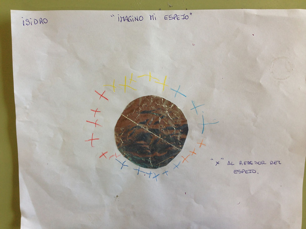 Estabamos caminando por todo el playground y allí al ver los espejos que estan en la pared, Hila dijo:" La imaginación es igual al espejo, ves que ves más allá..." Junto a Simón.F, comenzaron a observar más allá de los espejos.