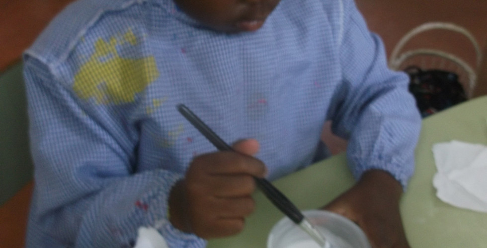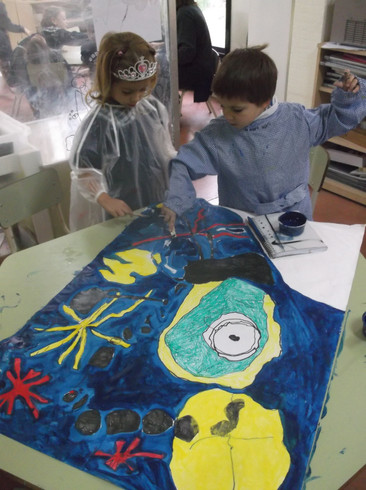 Los chicos continuaron con sus obras de arte divididos en grupos y utilizando los colores característicos de Miró.