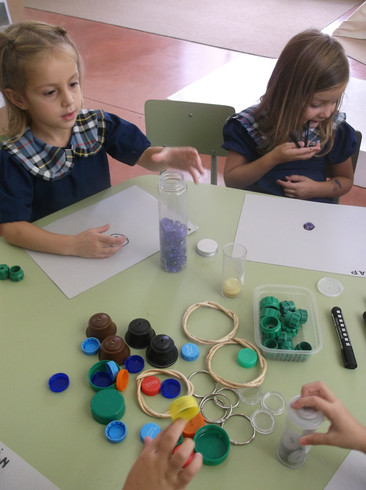 Partiendo de la experiencia anterior con el video sobre el cuadro de Miró, los chicos dibujaron los posibles escenarios donde el ojo de Miró fue después de ser empujado por la pelota roja. Hicieron comparaciones sobre las diferentes formas que tomaba el ojo y como éstas expresaban enojo, tristeza o alegría. Dramatizaron con sus propios ojos estos sentimientos y los representaron con material de descarte.