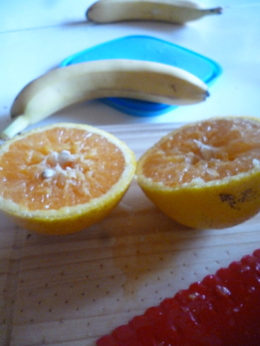 Pipe: " La naranja tiene jugo pero las otras no les sale jugo si apretás. Se hacen puré."